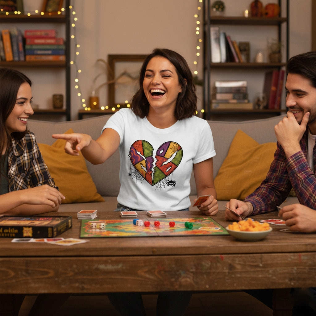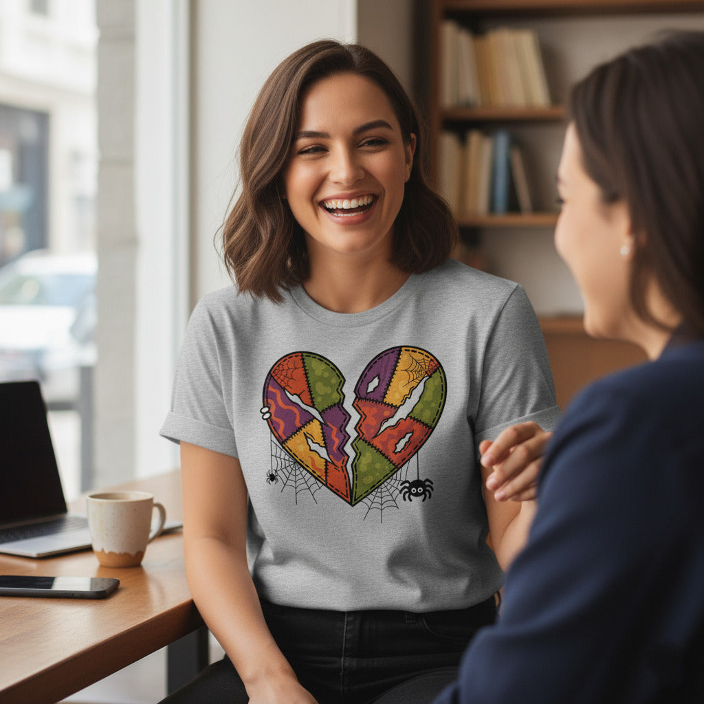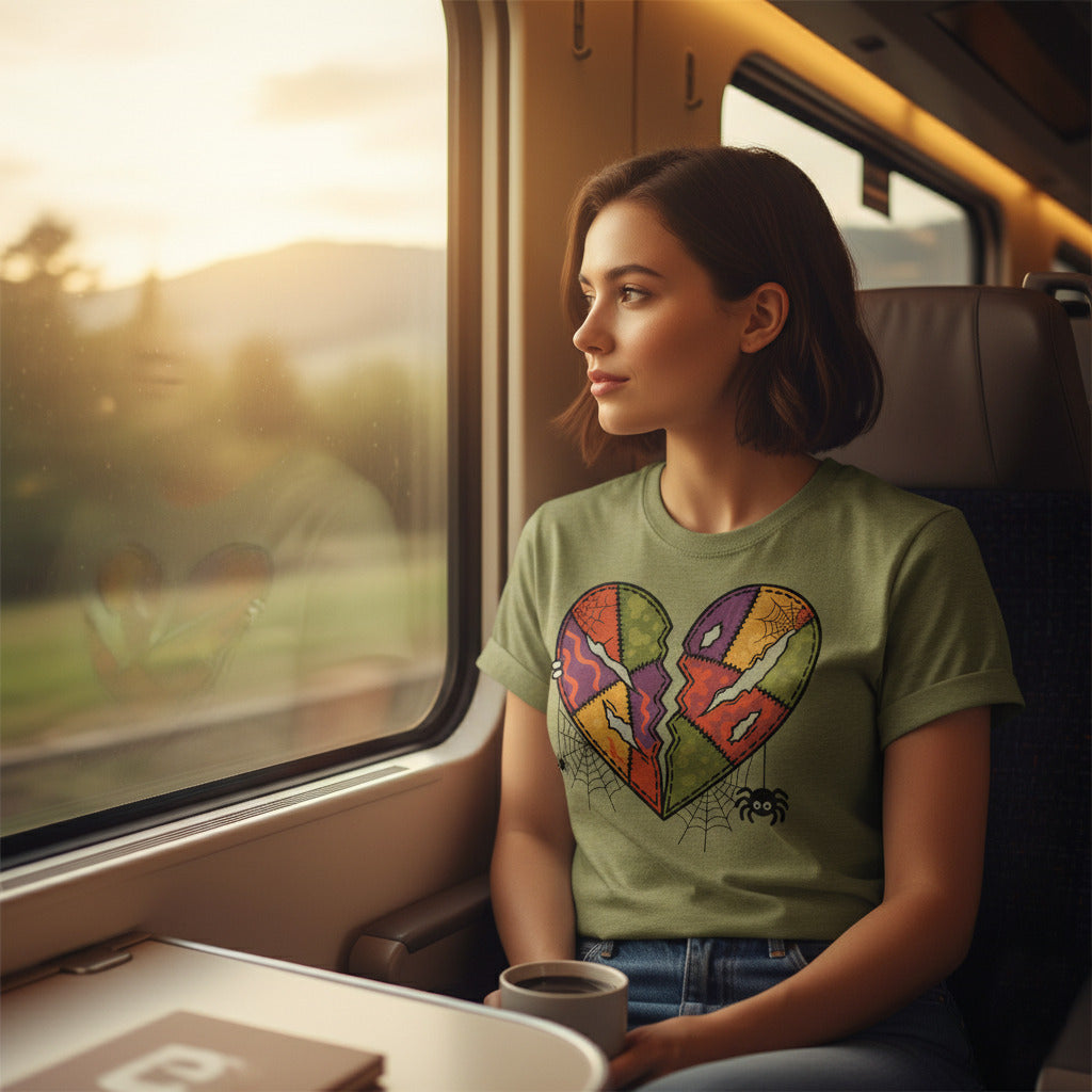 Embrace the beauty of melancholy—add this broken patchwork heart tee to your collection today.
