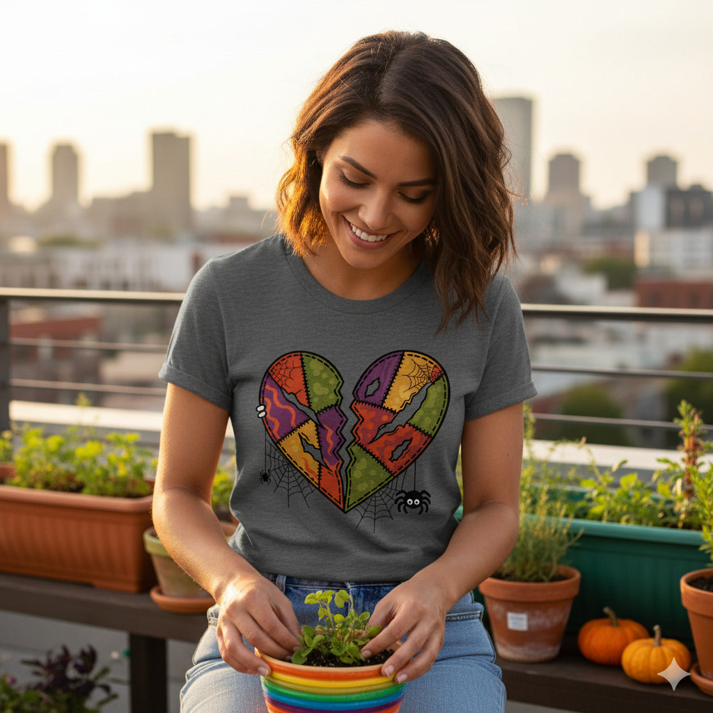 Broken Heart Patchwork T-Shirt - Spooky Vintage Halloween Tee, Emo Goth Shirt, Pastel Goth Gift, Creepy Cute Sad Heart Alternative Apparel