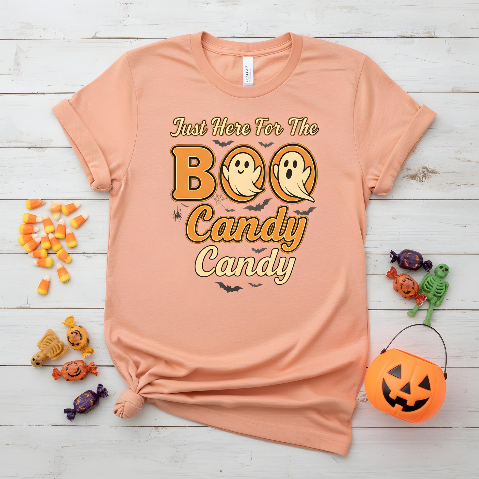 Just Here For The Boo Candy T-Shirt - Funny Ghost Halloween Tee, Trick or Treat Shirt, Spooky Cute Gift, Retro Fall Season Apparel
