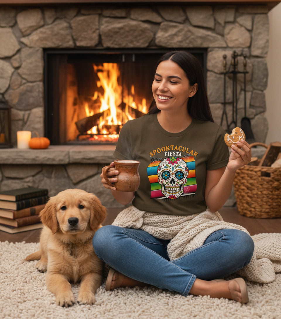Spooktacular Fiesta T-Shirt - Sugar Skull Day of the Dead Tee, Dia de los Muertos Shirt, Calavera Gift, Colorful Halloween Apparel
