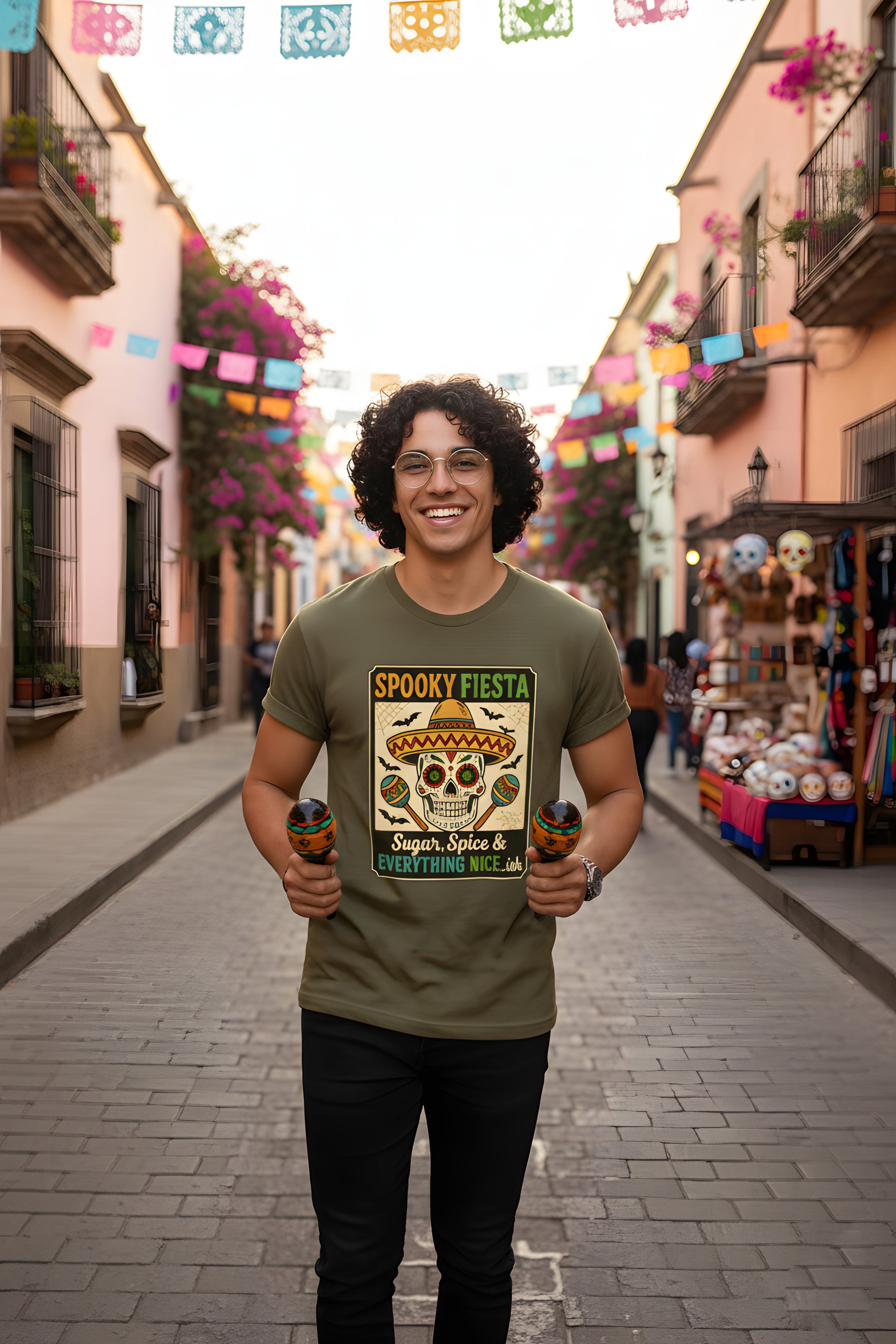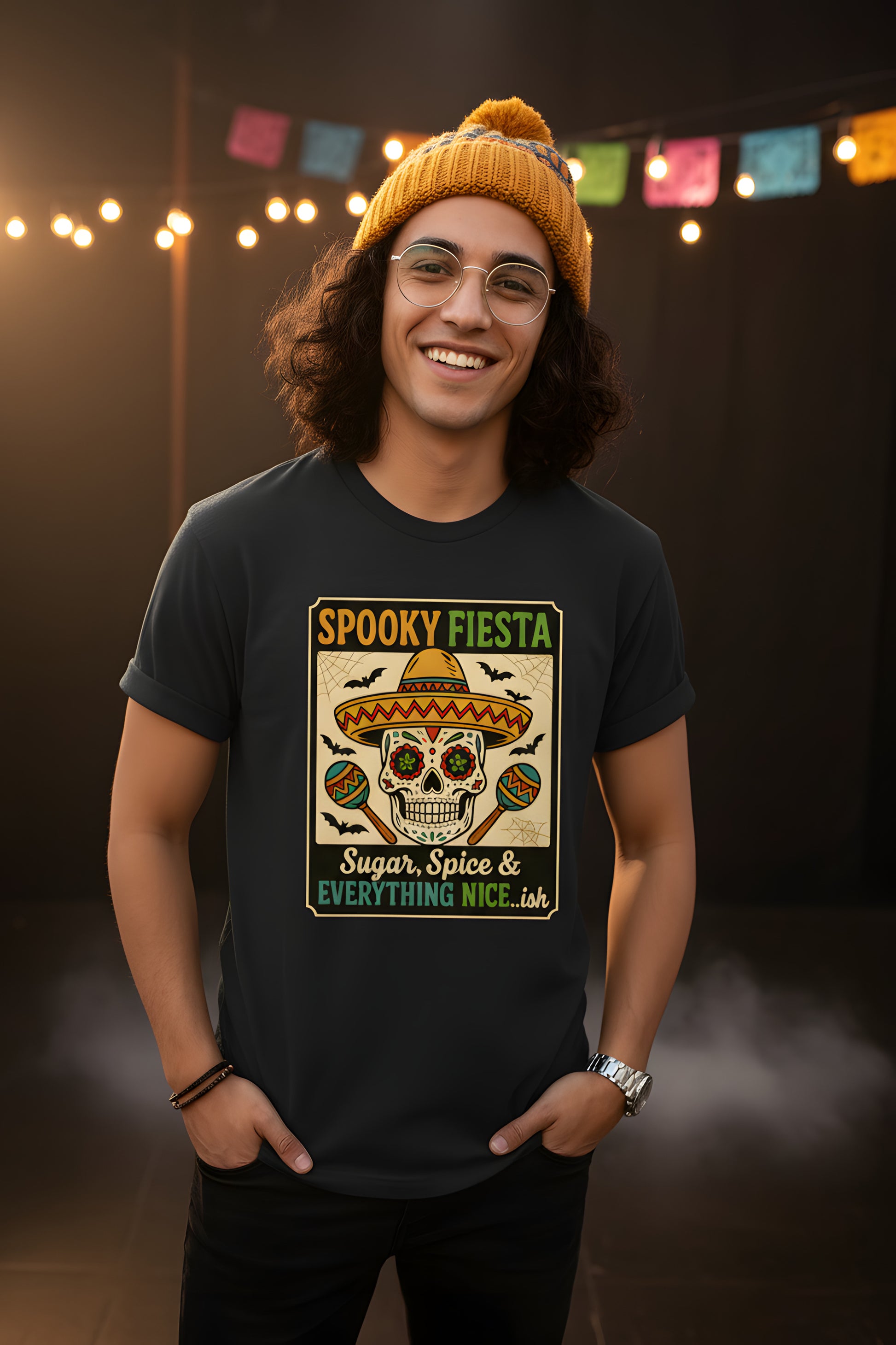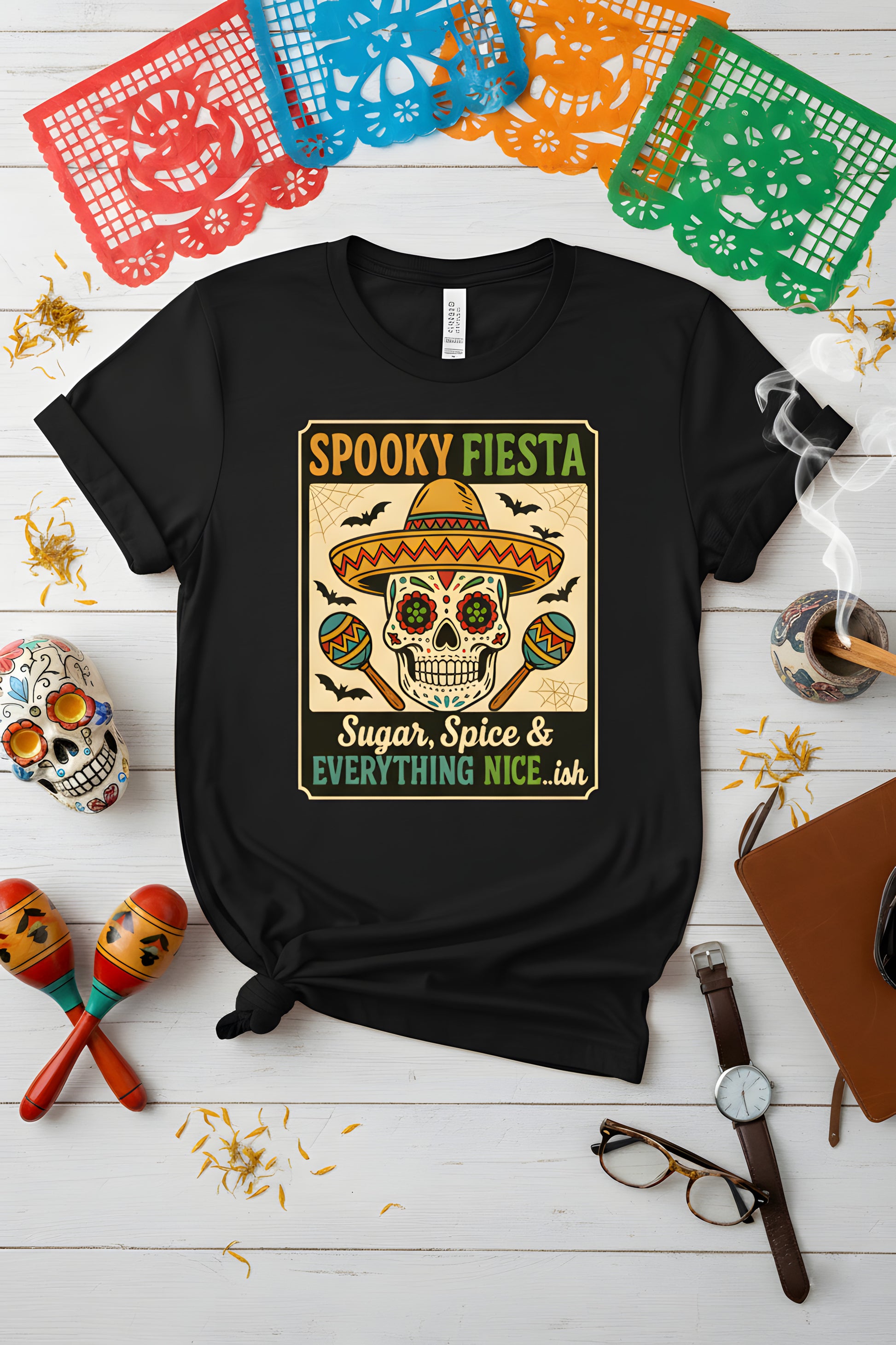 Spooky Fiesta T-Shirt - Sugar Skull Halloween Tee, Dia de los Muertos Shirt, Calavera Gift, Day of the Dead Top, Colorful Festival Apparel